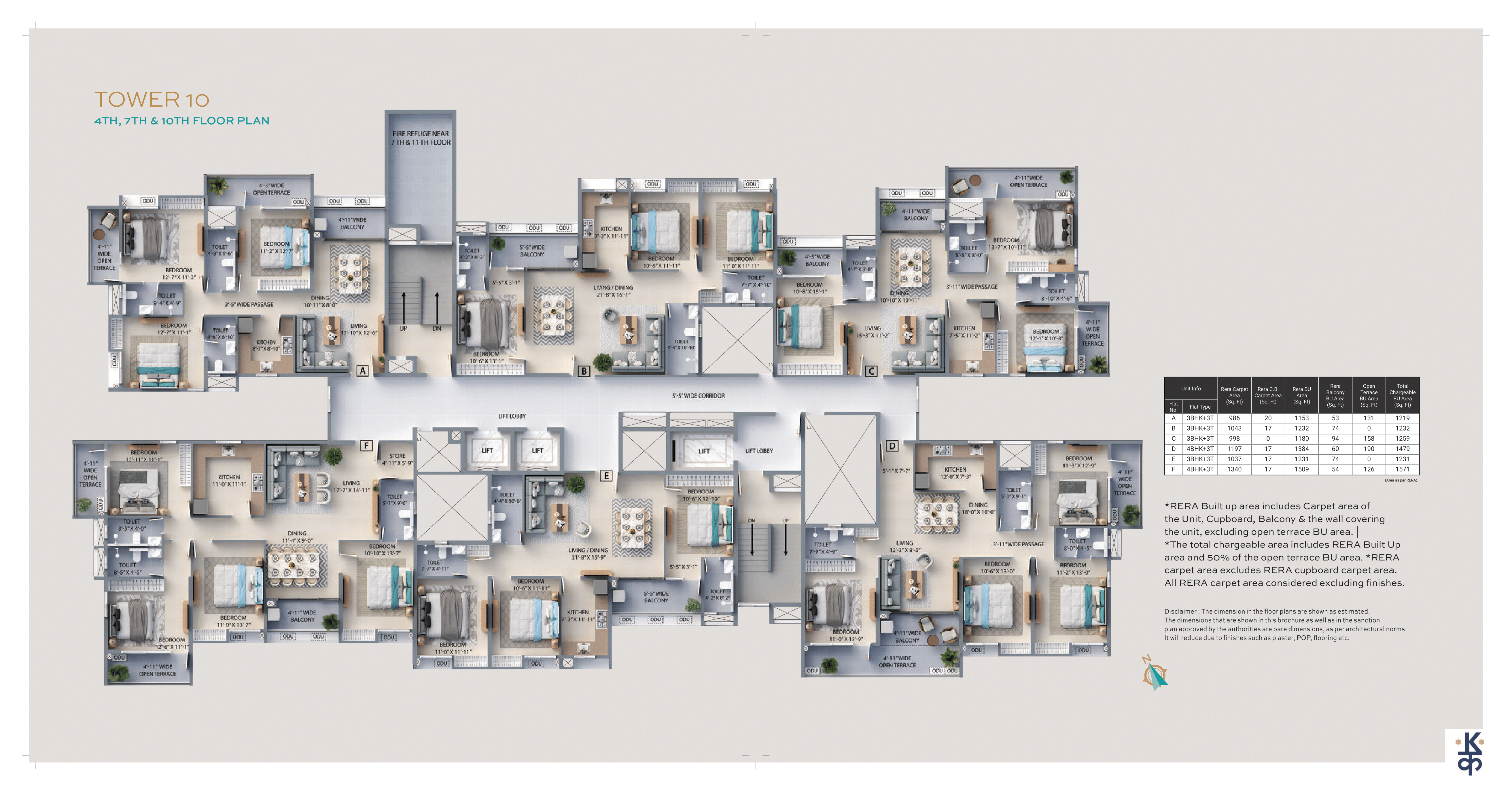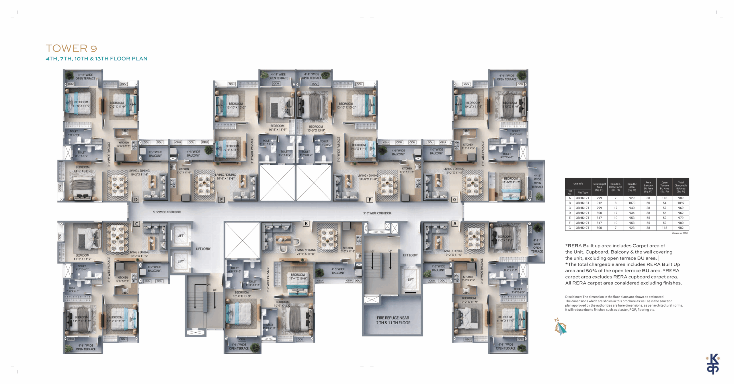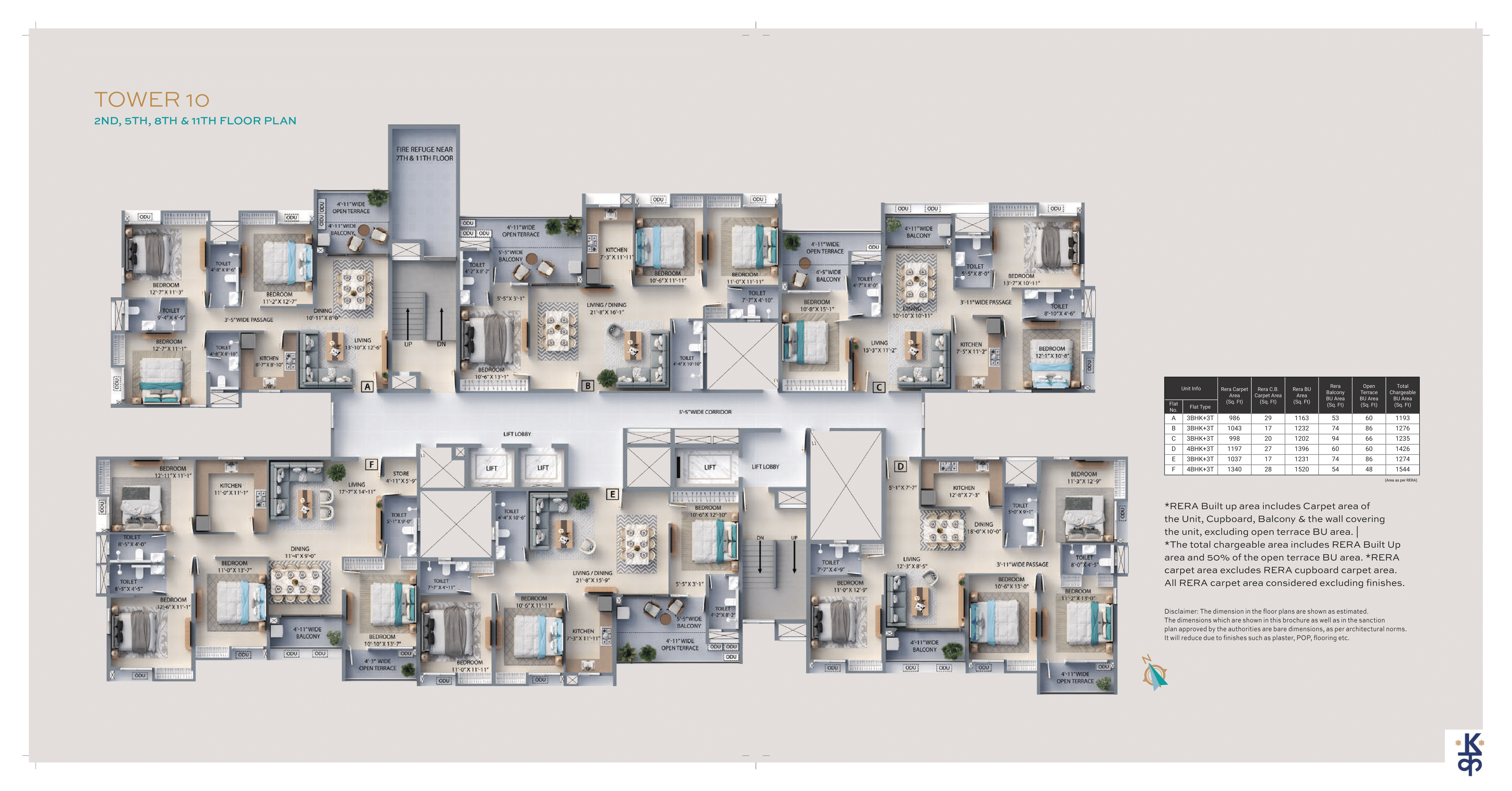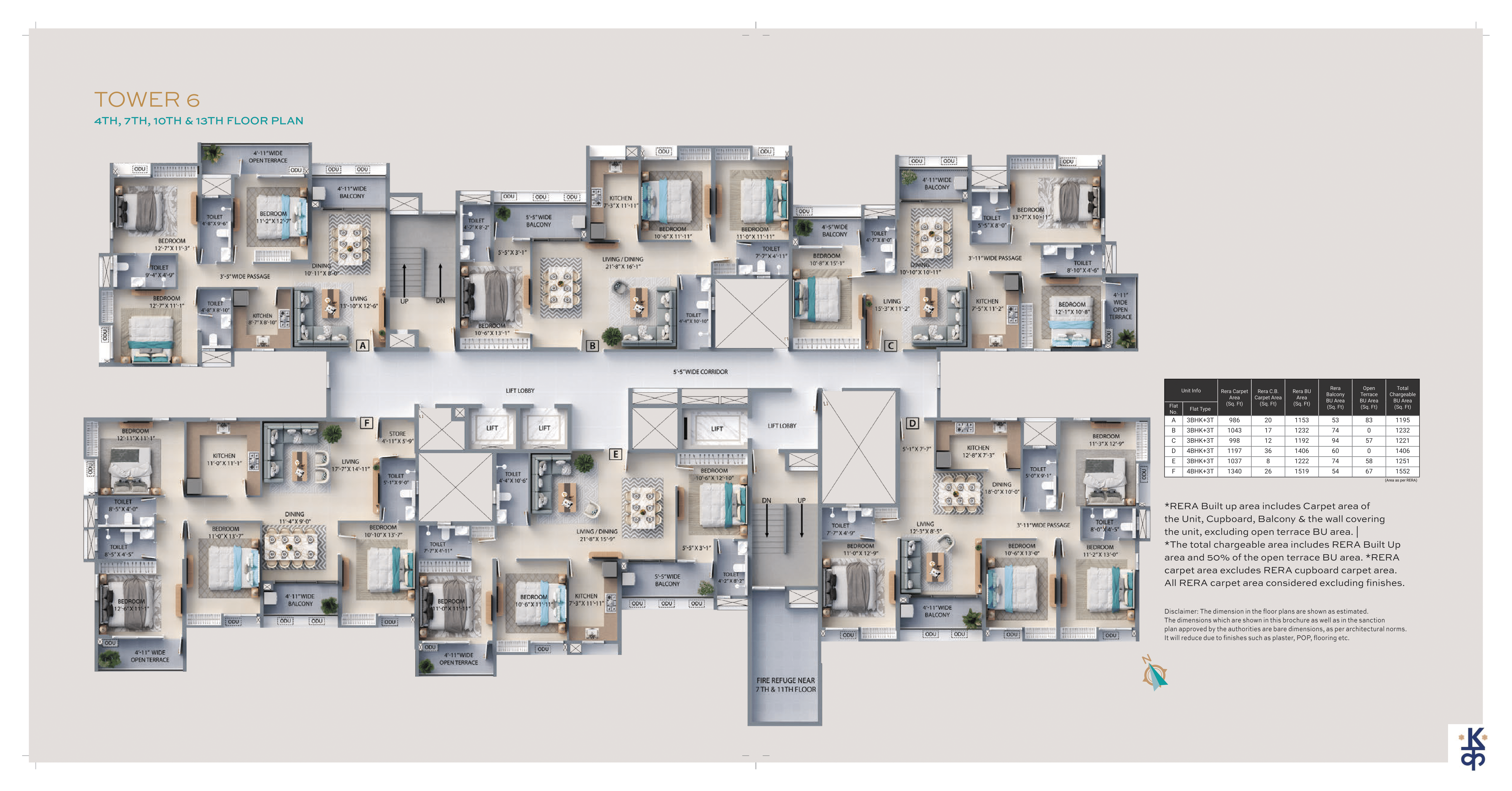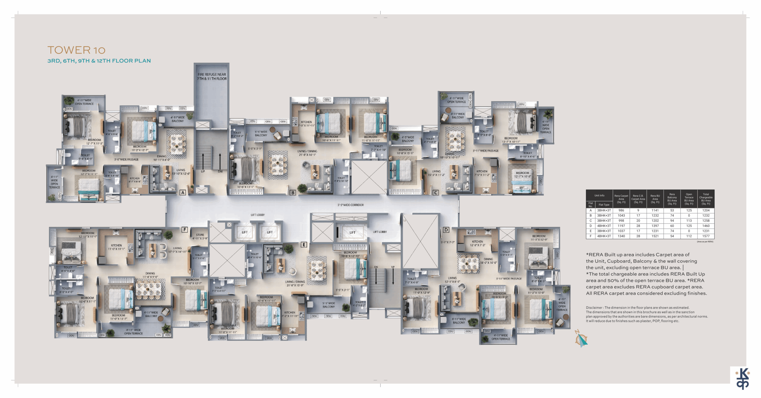 Built-up Area: 1070 – 1270 Sq.ft (BU)4BHK – 3TOI