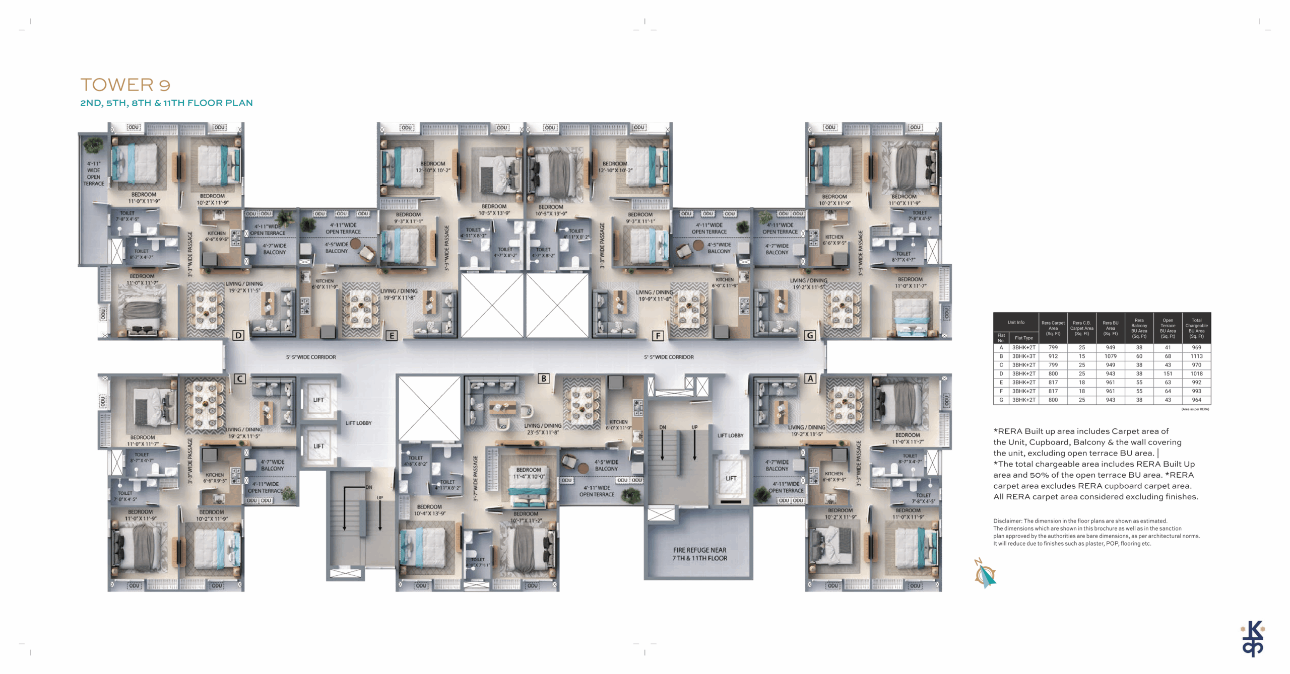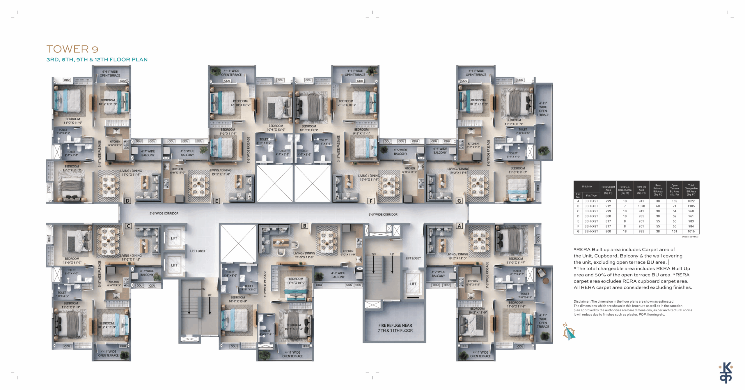 Built-up Area: 960 – 1020 Sq.ft (BU)3BHK – 3TOI