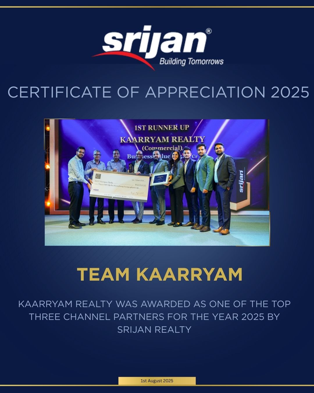 Mr Mayank Singh, Co-Founder KAARRYAM REALTY was honored to be invited as one of the eminent panelists at the “16th Realty+ Conclave & Excellence Awards, 2024 – East”.